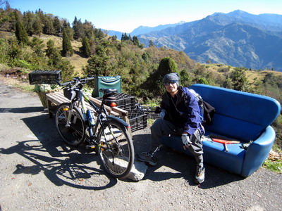 路邊一個廢棄的沙發,天氣好、視野不錯,停下來看看風景。