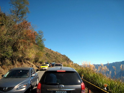 前方有汽車掉到山壁水溝中-小心啊!如果掉錯邊就到蘇州賣鴨蛋了。